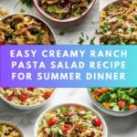 6. Serve: Before serving, stir the pasta salad again to mix in any dressing that may have settled at the bottom and enjoy your creamy ranch pasta salad.