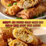 Crispy and flavorful Air Fryer Crab Cake Egg Rolls served with a spicy and smoky fire sauce. These seafood egg rolls are a delicious appetizer, blending lump crab meat with classic seasonings and fresh vegetables, cooked to golden perfection using an air fryer for a healthier twist.