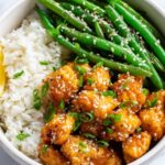 This Air Fryer Lemon Chicken recipe offers a deliciously tangy and crispy chicken dish made easy with the convenience of an air fryer. The chicken is marinated, coated in a double layer of flour and egg, then air fried to golden perfection before being tossed in a bright, sweet, and savory lemon sauce. Garnished with fresh green onions, this recipe is perfect for a quick weeknight dinner that’s full of flavor and minimal oil.