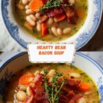 A hearty and flavorful Bean with Bacon Soup featuring tender navy beans simmered with crispy bacon, aromatic vegetables, and herbs. This comforting soup is perfect for a cozy meal and offers a creamy texture with the option to blend part of the soup. Garnished with fresh parsley and bacon bits, it’s a delicious and filling dish that warms from the inside out.