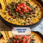 This Beef Queso Dip is a creamy, cheesy Tex-Mex appetizer featuring seasoned ground beef, melted cheeses, and a hint of spice from jalapeños. Perfect for parties or game-day snacks, it combines rich flavors and smooth texture served hot with crunchy tortilla chips.