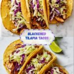 To reheat, gently warm the blackened tilapia in a skillet over low heat just until heated through to prevent drying it out. Keep the slaw chilled until ready to serve and assemble your tacos fresh for the best texture and flavor.