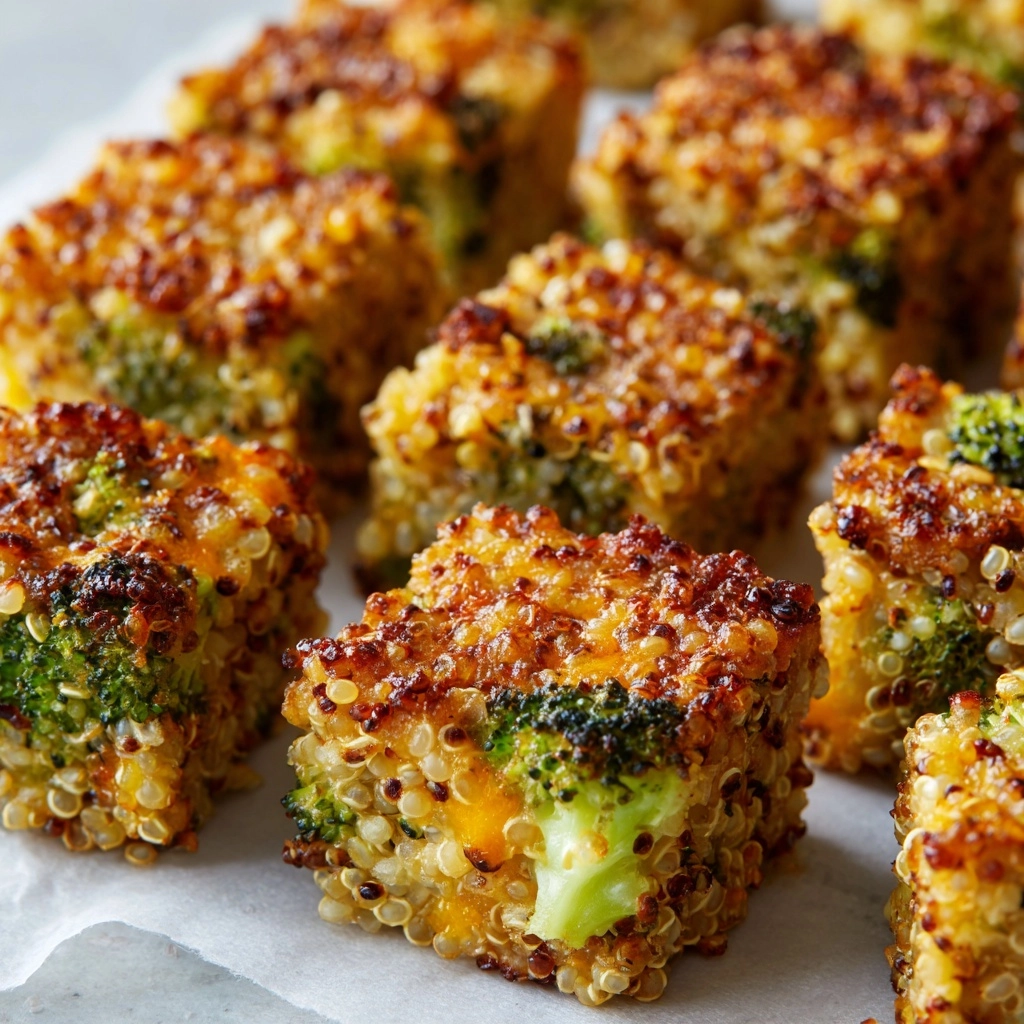 These Broccoli Cheddar Quinoa Bites are a healthy and delicious appetizer perfect for snacks or meal prep. Packed with cooked quinoa, steamed broccoli, sharp cheddar, and Parmesan cheese, these mini bites are baked to golden perfection and offer a satisfying vegetarian option that is kid-friendly and easy to make.
