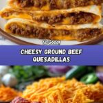 These Cheesy Ground Beef Quesadillas are a quick and delicious meal perfect for any day. Ground beef seasoned with taco spices is combined with a blend of Monterey Jack and sharp cheddar cheeses, melted together inside warm flour tortillas. Pan-fried until golden and crispy, these quesadillas offer a flavorful, gooey filling with optional toppings like jalapeños, cilantro, and sour cream to customize your perfect bite.