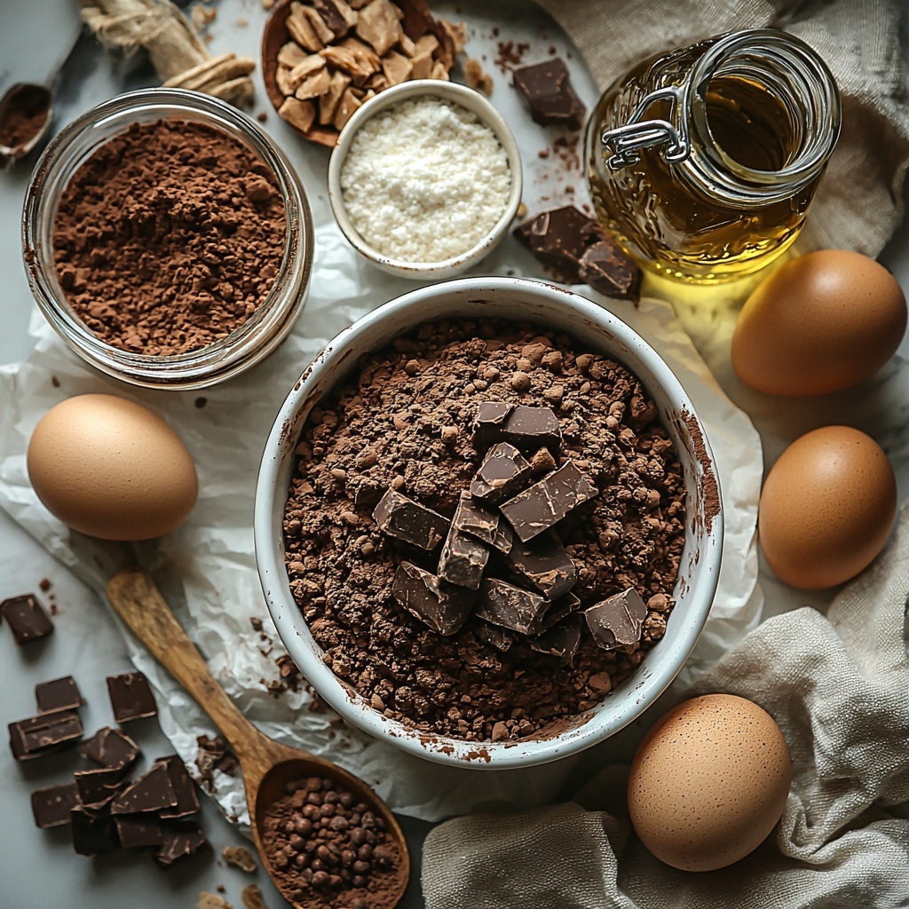 - Large eggs: Bind the ingredients and contribute to that fudgy texture.