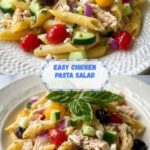 This Chicken Pasta Salad is a refreshing and nutritious dish perfect for a light lunch or a picnic. Combining cooked pasta, tender chicken breast, fresh vegetables, and a zesty homemade dressing, it offers a delightful blend of flavors and textures. The addition of feta cheese and fresh basil leaves enhances the salad with Mediterranean-inspired notes.