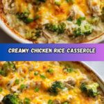 This creamy Chicken Rice Casserole combines tender chicken, long-grain white rice, and a rich blend of cream of chicken and mushroom soups for a comforting and hearty one-dish meal. Baked to perfection with a cheesy topping and infused with savory herbs and spices, it’s an easy family-friendly dinner perfect for any night of the week.