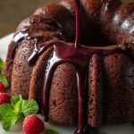Pairing this cake with a scoop of vanilla bean ice cream or a bowl of fresh berries beautifully balances the dessert’s rich chocolate and tart glaze, offering a refreshing bite alongside each slice.