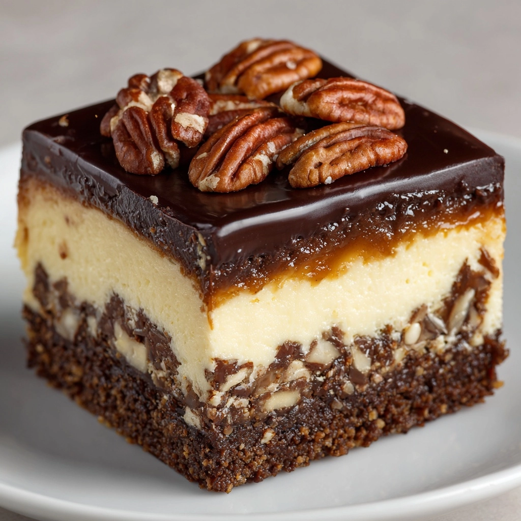 While the chopped pecans on top add wonderful texture, you can elevate the presentation with a few extra touches. A dusting of cocoa powder or a drizzle of caramel sauce complements the chocolate notes beautifully. Fresh whipped cream piped in decorative dollops adds a light contrast to the dessert’s richness. For a festive flair, consider adding chocolate shavings or even a sprinkle of sea salt to excite the palate.