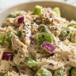A classic and creamy chicken salad recipe that combines shredded cooked chicken with crisp celery, tangy Dijon mustard, and fresh herbs. Perfect for sandwiches, wraps, or served over a bed of greens, this easy-to-make chicken salad is a delicious and versatile dish ideal for quick lunches or light dinners.
