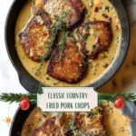 This classic Southern recipe features crispy, golden-brown country fried pork chops smothered in rich, creamy bacon gravy. Perfectly seasoned and pan-fried pork chops are kept warm in the oven while a savory bacon-infused gravy is made in the same skillet, delivering a comforting and hearty meal.