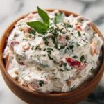 This spread is typically served cold or at room temperature, so reheating isn’t necessary. If you prefer it warm, gently microwave in short bursts, stirring frequently to avoid overheating and breaking the texture.