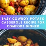 This hearty Cowboy Potato Casserole combines seasoned ground beef, tender potatoes, and a creamy mushroom sauce, slow-cooked to perfection and topped with melted cheddar cheese. A comforting one-dish meal that’s perfect for family dinners or meal prep.