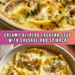 A rich and creamy Alfredo lasagna soup that combines Italian sausage, tender broken lasagna noodles, and a velvety Alfredo sauce base. This comforting soup is packed with cheese, fresh spinach, and herbs, making it a hearty and satisfying meal perfect for chilly evenings.