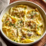 A rich and creamy Alfredo lasagna soup that combines Italian sausage, tender broken lasagna noodles, and a velvety Alfredo sauce base. This comforting soup is packed with cheese, fresh spinach, and herbs, making it a hearty and satisfying meal perfect for chilly evenings.