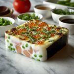 After baking, allow the dish to cool slightly before garnishing with chopped green onions to add a fresh, crisp contrast to the warm, creamy layers beneath. Now you’re ready to enjoy every savory bite of this comforting sushi bake creation.