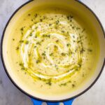 Using an immersion blender, puree the soup right in the pot until you reach your desired texture—whether you like it silky smooth or slightly rustic with little potato bits, this is your chance to customize.