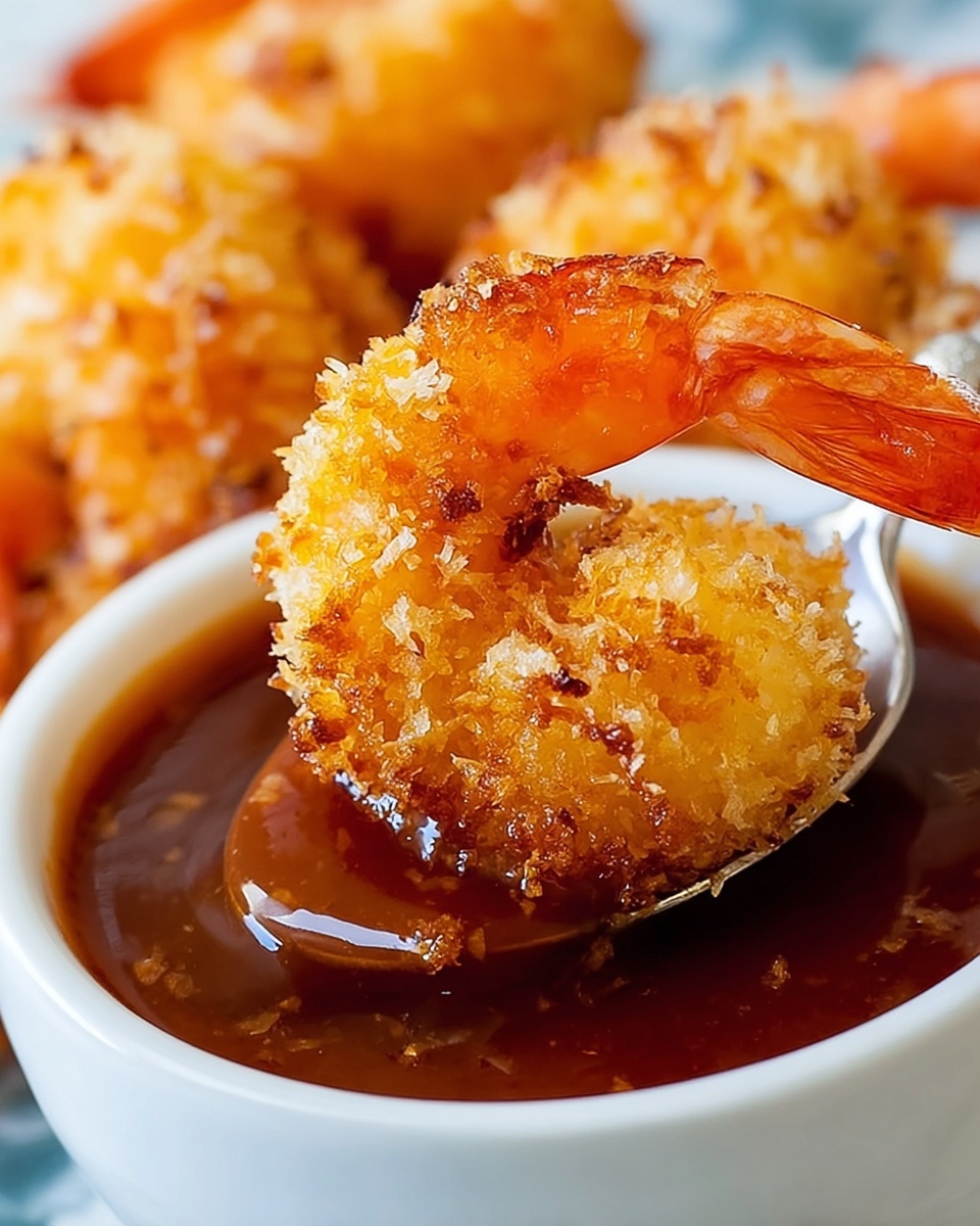 - Serve: Serve the crispy coconut shrimp immediately while hot and crispy alongside the prepared dipping sauce for best flavor and texture.