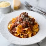 - Serve: Plate the cooked pasta, top generously with the beef ragu, and garnish with parmesan, ricotta, and fresh thyme for a rich, rustic finish. Enjoy!