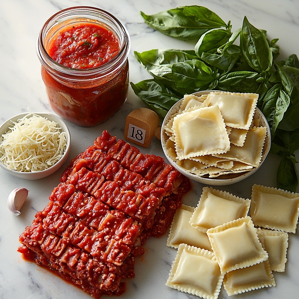 - Frozen cheese-filled ravioli (1 package, 25 oz): This is the clever shortcut that mimics lasagna noodles but with an ooey, gooey cheese surprise inside.