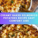 Deliciously creamy and cheesy Delmonico Potatoes feature tender slices of russet potatoes baked in a rich sauce of heavy cream, cheddar, and Parmesan cheeses, enhanced with sautéed onions and garlic for deep flavor. This comforting side dish is perfect for holiday dinners or a cozy family meal.
