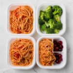 This easy Spaghetti Lunchbox recipe is perfect for a quick, nutritious meal that can be prepared in under 20 minutes. Featuring classic spaghetti tossed with flavorful pasta sauce, topped with Parmesan cheese and accompanied by steamed broccoli and fresh grapes, it offers a balanced combination of carbs, protein, and vitamins ideal for busy weekdays or packed lunches.