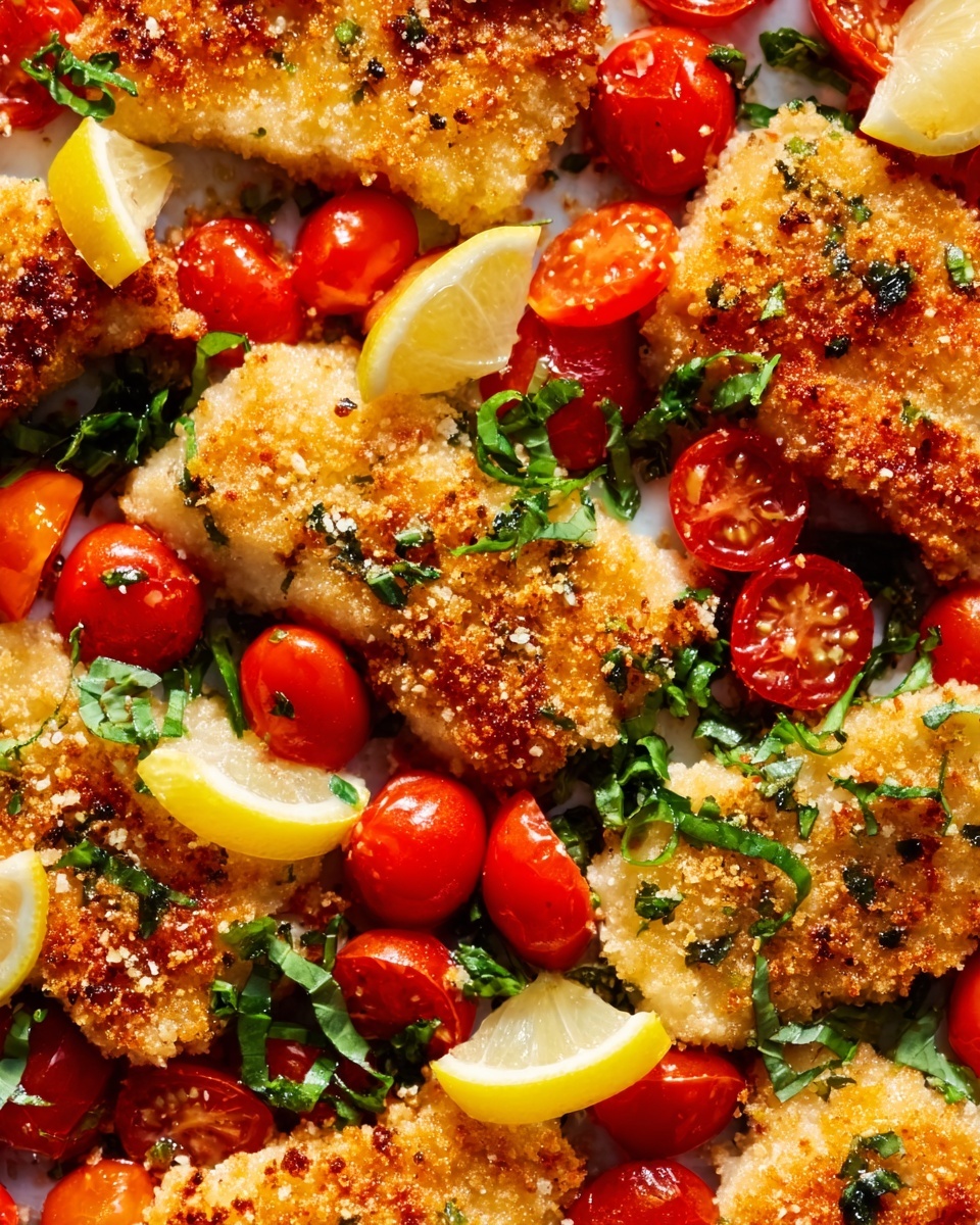 Place the breaded cod fillets on top of the seasoned cherry tomatoes in the casserole dish. Slide the dish into the oven’s center rack and bake for 25 to 30 minutes, until the cod is cooked through, flaky to the touch, and the crust turns a beautiful golden brown.