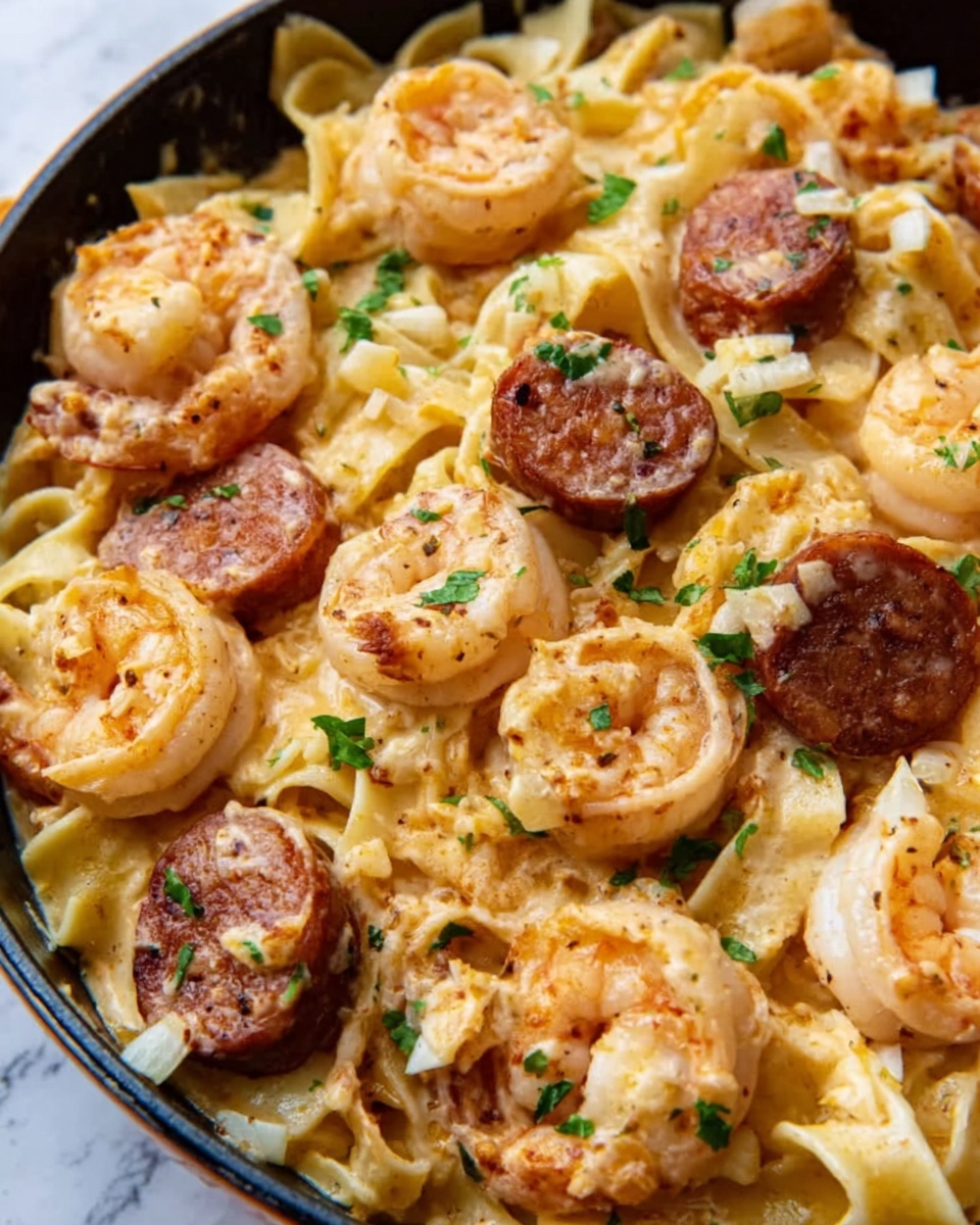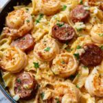 Garlic Butter Shrimp and Sausage Skillet Pasta Recipe