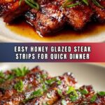 For a fun twist, serve these honey glazed steak strips wrapped in warm tortillas with fresh avocado and a drizzle of creamy sauce for quick steak wraps. Another idea is layering them over garlic mashed potatoes or scattered across an Asian-inspired noodle bowl to impress guests or brighten up a casual meal.