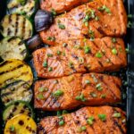 This Grilled Maple Salmon recipe combines sweet maple syrup and savory soy sauce to create a perfectly balanced glaze for tender, flaky salmon fillets. Marinated with garlic, sesame oil, and black pepper, then quickly grilled to perfection, this dish is a delicious and healthy option for a quick dinner or elegant meal. Garnished with fresh green onions, the salmon offers a delightful mix of smoky, sweet, and umami flavors.