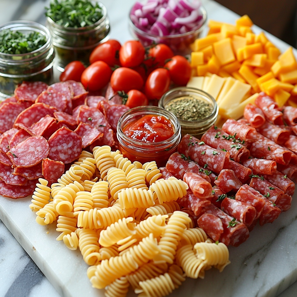 The beauty of the Grinder Pasta Salad Recipe lies in its straightforward ingredients, each selected to bring a unique flavor or texture to the bowl. From the tender rotini pasta that soaks up the creamy dressing to the sharpness of provolone and the delightful zip of banana peppers, every component works in harmony.