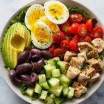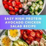 A nutritious and flavorful high-protein avocado chicken salad with hard-boiled eggs, fresh vegetables, and a light lemon-olive oil dressing. Perfect for a healthy lunch or dinner that is quick to prepare and packed with wholesome ingredients.