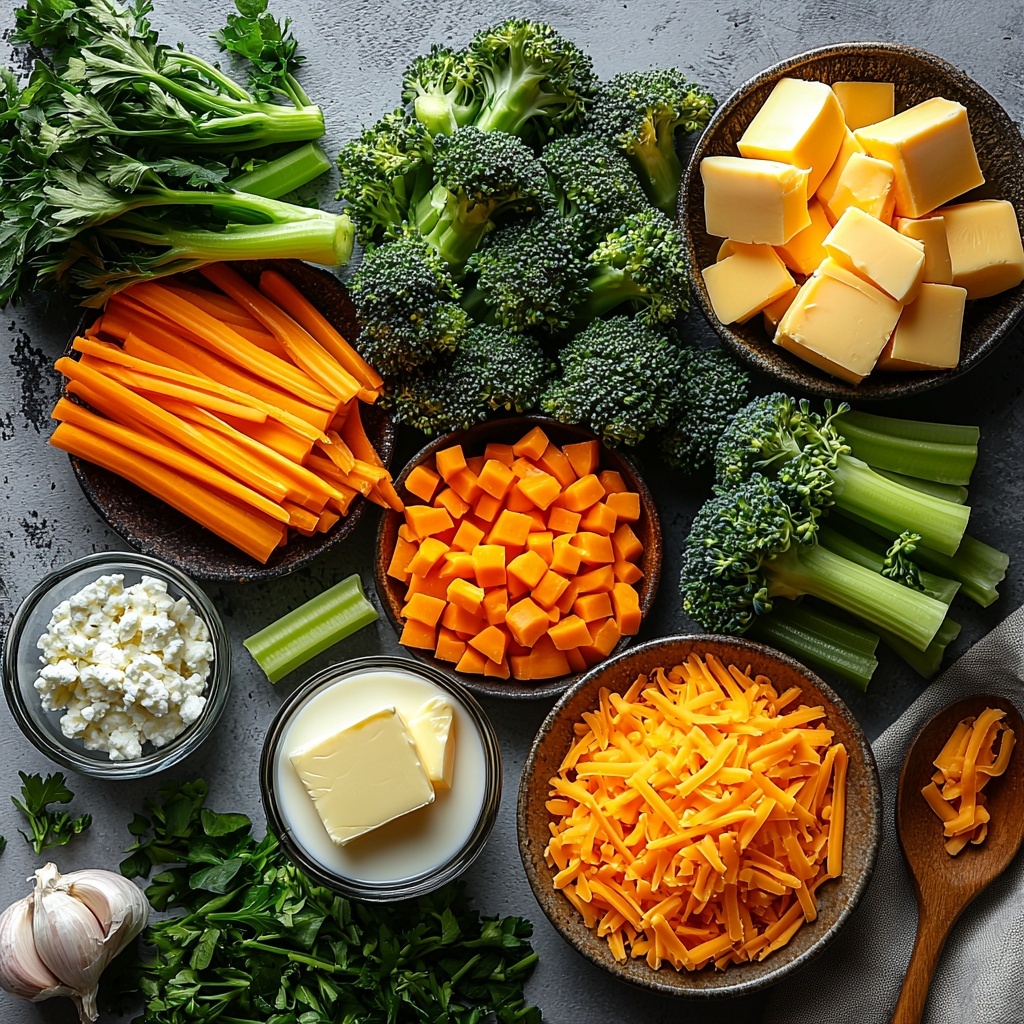 Getting the ingredients right is the secret behind this soup’s luscious taste and thick, creamy texture. Each component plays a vital role, whether it’s the mellow sweetness of carrots or the sharpness of cheddar cheese that perfectly balances the broccoli.