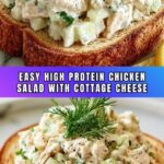 A light and protein-packed chicken salad made with creamy cottage cheese, fresh herbs, and crisp vegetables. Perfect for a nutritious lunch or snack, this High-Protein Cottage Cheese Chicken Salad combines tender cooked chicken breast with cottage cheese, lemon juice, Dijon mustard, and fresh dill for a refreshing flavor. It’s easy to prepare, requires no cooking, and offers a healthy balance of protein and fresh ingredients.