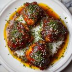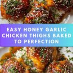 This Honey Garlic Chicken Thighs recipe features tender, juicy bone-in, skin-on chicken thighs baked in a flavorful marinade of honey, soy sauce, garlic, and a touch of apple cider vinegar. The combination of sweet and savory flavors is enhanced by sesame oil and seeds, creating a deliciously sticky glaze perfect for an easy weeknight dinner.