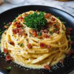 This Indulgent Classic Bacon Carbonara Pasta recipe delivers a rich, creamy, and savory Italian favorite in just 30 minutes. Featuring a delicious blend of Parmesan and Pecorino Romano cheeses, smoky thick-sliced bacon, and a silky sauce made from eggs and freshly ground black pepper, this dish is perfect for a quick yet comforting meal that feels both authentic and luxurious.