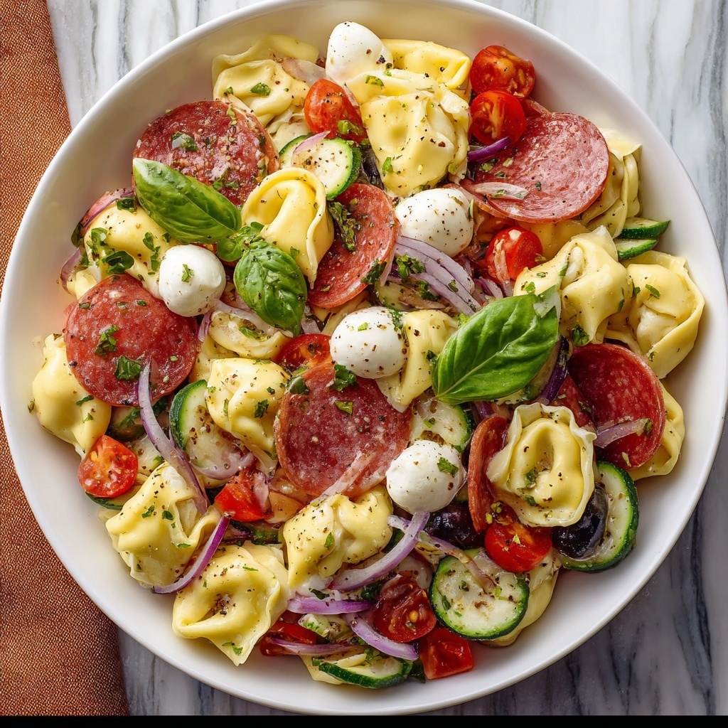 Adding a few bright garnishes like extra fresh basil leaves, a sprinkle of freshly grated Parmesan, or even some toasted pine nuts can take your Italian Tortellini Pasta Salad Recipe to the next level visually and flavor-wise. These finishing touches make it look as inviting as it tastes.