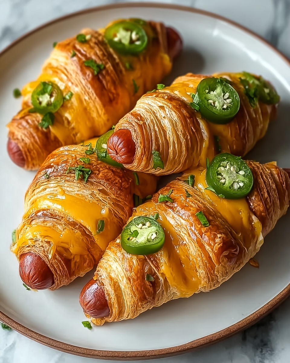 Jalapeño Popper Pigs are a spicy and savory appetizer featuring jalapeños stuffed with a creamy cheese and bacon mixture, wrapped around mini sausages, and baked in puff pastry until golden and crispy. Perfect for parties and gatherings, these bite-sized treats deliver a delicious blend of heat and comfort in every bite.