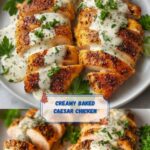 This Juicy Baked Caesar Chicken with Parmesan Sauce is a flavorful and easy-to-make dish featuring tender chicken breasts baked with a creamy Caesar dressing, sour cream, and Parmesan cheese sauce. Perfectly seasoned and baked to juicy perfection, this recipe offers a delicious twist on classic chicken that’s great for weeknight dinners or special occasions.