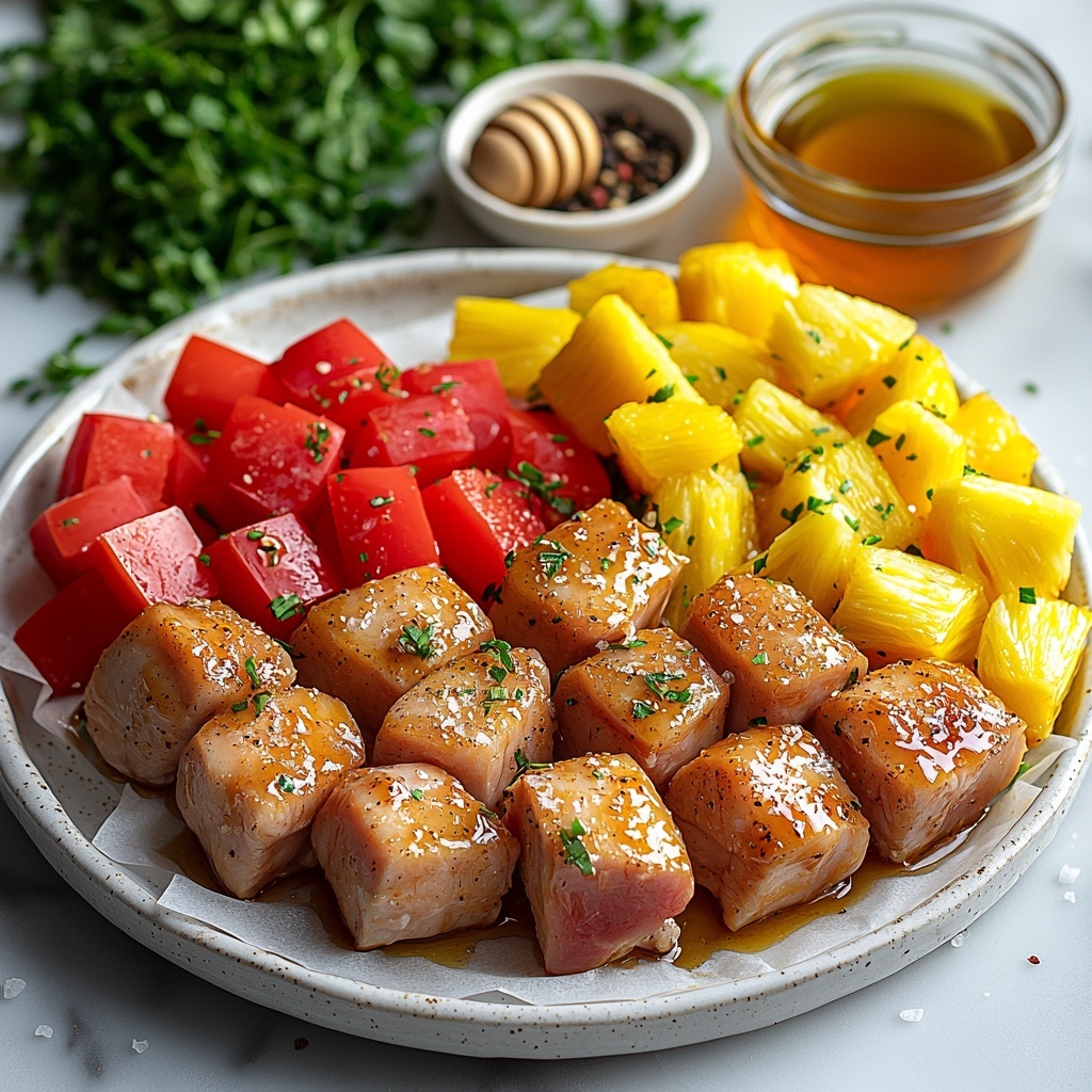 The beauty of Juicy Pineapple Chicken Kabobs for the Ultimate Summer BBQ Recipe lies in its simplicity; each ingredient plays a crucial role in layering flavor, texture, and visual appeal. From the tender chicken thighs that stay moist under high heat to the sweet, caramelizing pineapple chunks, these essentials come together effortlessly for an unforgettable dish.
