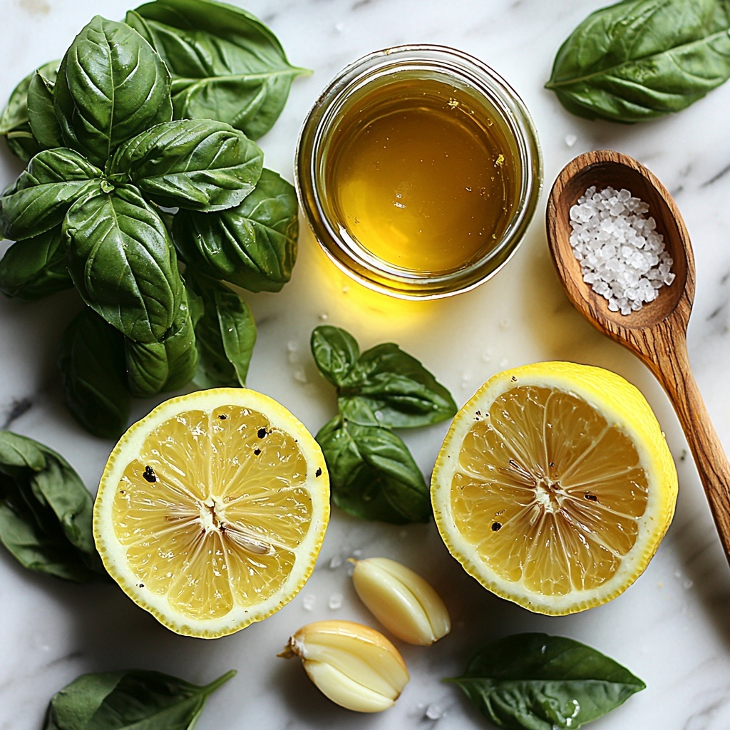 The beauty of this Lemon Basil Vinaigrette Recipe lies in how simple yet thoughtful its ingredients are. Each one is essential for balancing flavor, texture, and color — from the herbal freshness of basil to the subtle zing of lemon zest, every component plays a starring role.