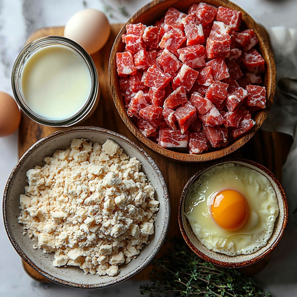 In a large mixing bowl, combine the ground beef, Italian breadcrumbs, 1/4 cup milk, and the egg. Blend everything together gently but thoroughly to ensure the mixture stays tender and holds its shape during baking. This step is the backbone of your casserole’s texture, so don’t rush it.