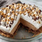 Before serving, top with your choice of chocolate shavings, extra whipped cream, or crushed peanuts. These toppings add texture and boost the visual appeal, turning a simple pie into a party-worthy dessert.