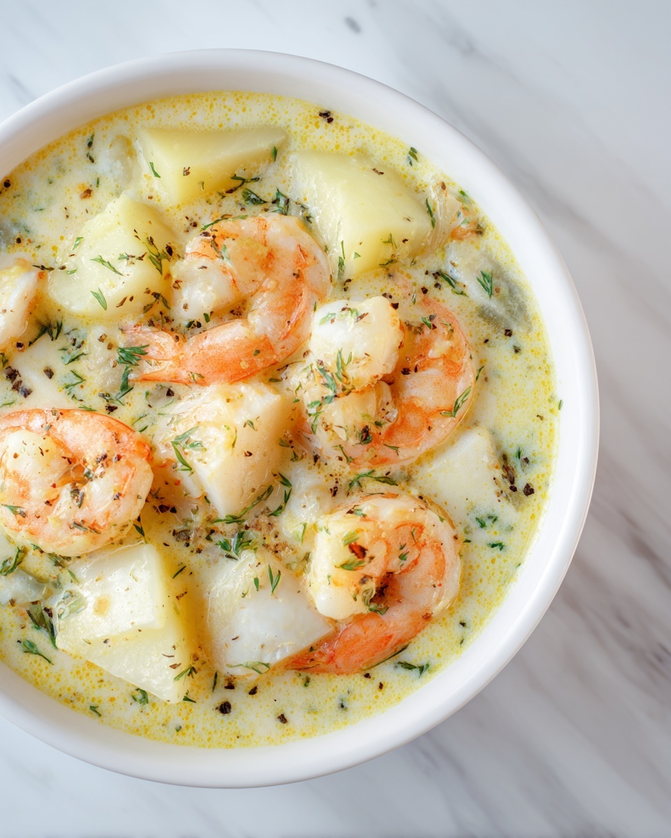 While seafood chowder freezes best without the cream added, you can prepare the base ahead of time. Freeze the broth and vegetables in a sealed container for up to 3 months. When ready to enjoy, thaw it overnight in the fridge and add the cream and seafood fresh before reheating gently on the stove. This method prevents the seafood from becoming tough and the cream from separating.