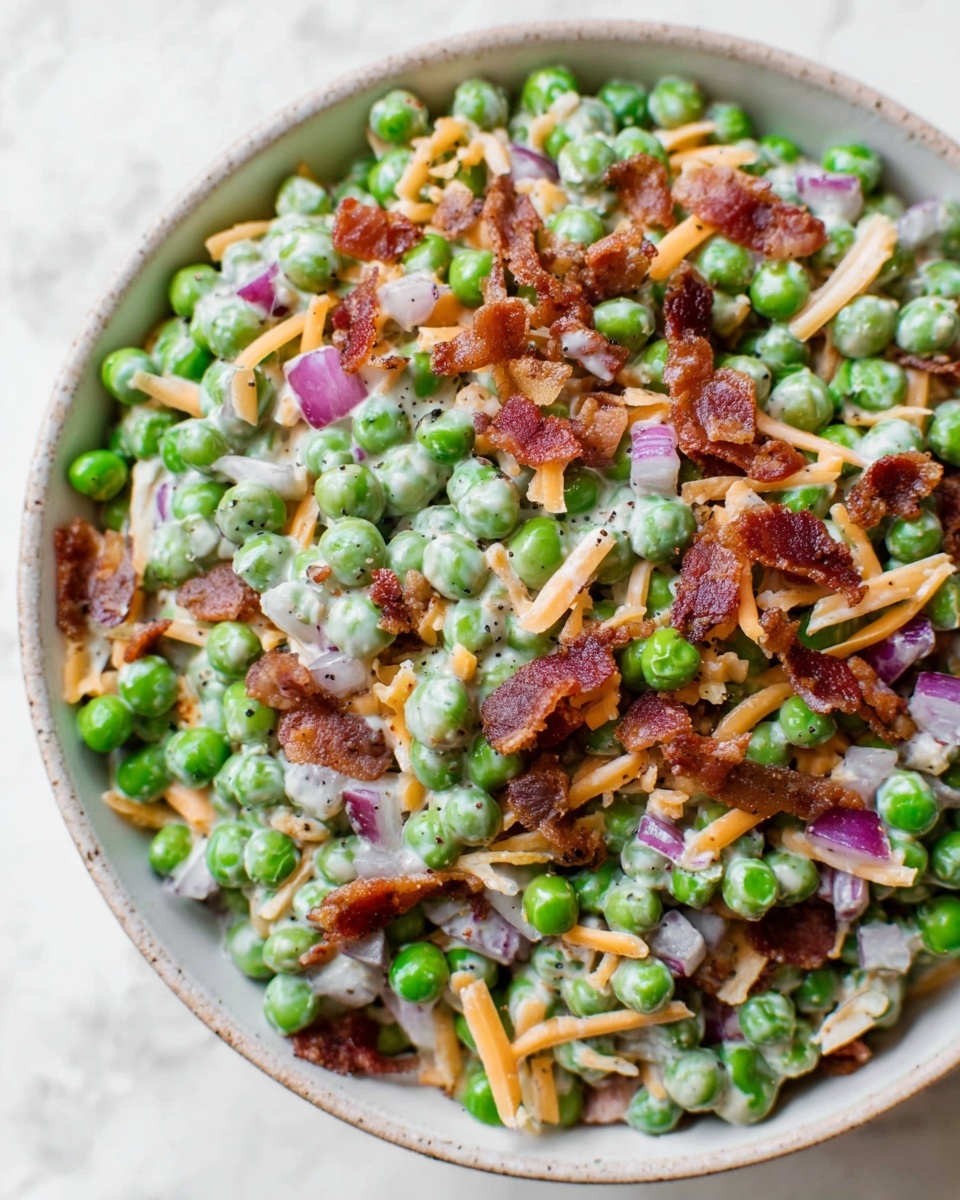 Trust me when I say this Pea Salad with Bacon Recipe will quickly become one of your go-to favorites. It’s bursting with flavor, surprisingly easy to make, and perfect for so many occasions. Don’t hesitate—grab those ingredients and start mixing up a bowl of this gem today. Your taste buds will thank you!