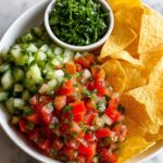 A fresh and tangy Quick Pickle De Gallo perfect for snacking or as a flavorful accompaniment to tortilla chips. This easy-to-make dish combines diced tomatoes, onions, fresh cilantro, and diced pickles, all brightened with lime juice and a pinch of salt. Ready in just 15 minutes with no cooking required, it’s a vibrant twist on traditional pico de gallo.
