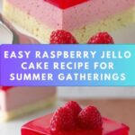To elevate this Raspberry Jello Cake Recipe, top it with extra fresh raspberries and a light dusting of powdered sugar. The contrast between the delicate powdered sugar and the bold red berries amps up the visual appeal and adds a hint of elegance. You could also add a few mint leaves for a pop of green and fresh aroma that complements the raspberry flavors.