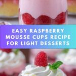 Delightfully light and creamy Raspberry Mousse Cups featuring a luscious raspberry mousse layered over ladyfinger cookies, garnished with fresh raspberries and mint leaves. Perfectly balanced with a touch of lemon and whipped cream, this dessert is elegant yet simple to prepare.