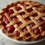 This Rustic Sweet Baked Strawberry Pie features a flaky homemade crust enveloping a luscious filling of fresh strawberries sweetened and thickened to perfection. It’s a delightful dessert that combines a crisp, golden crust with juicy, flavorful berries, perfect for any occasion.