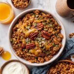 This Salted Caramel Pumpkin Granola combines the warm flavors of pumpkin purée, caramel, and pumpkin pie spice to create a rich, crunchy, and slightly sweet snack or breakfast topping. Perfectly balanced with a touch of flaky sea salt and crunchy pecans and pumpkin seeds, this homemade granola is baked to a golden crisp and offers a delightful seasonal treat.